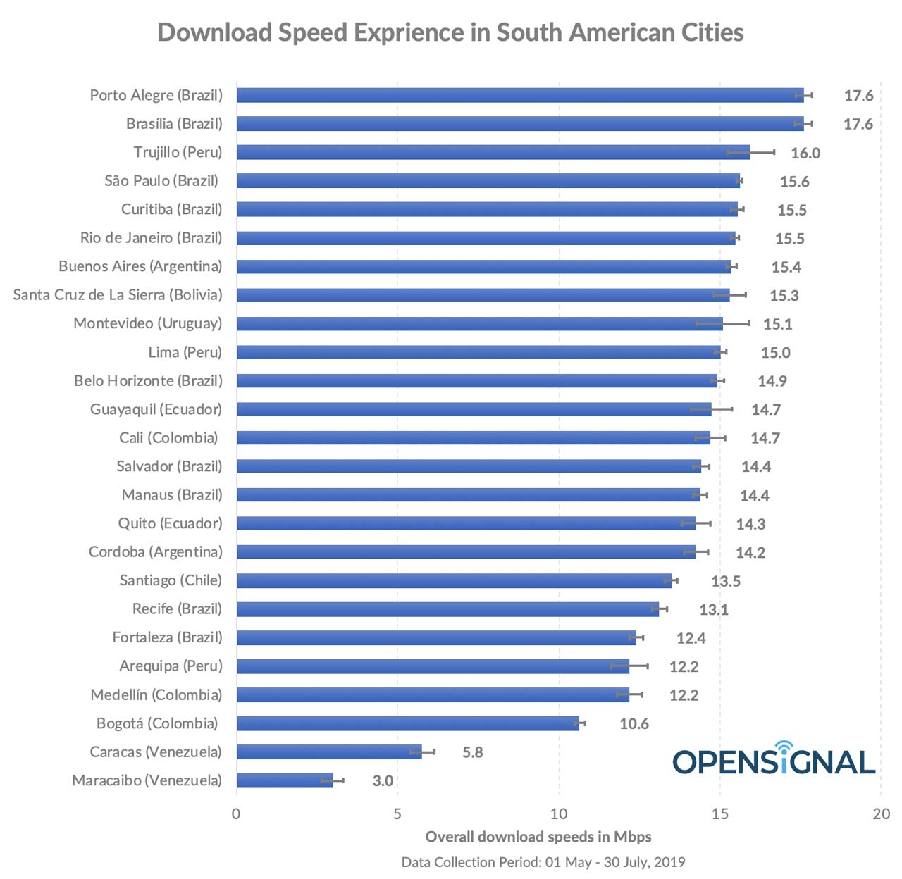 América Latina se caracteriza por tener algunas de las ciudades más grandes del mundo, sin contar la variada geografía, lo cual hace que conectarlas a las redes móviles sea algo complejo. ¿Cuáles tienen la mejor velocidad? Opensignal elaboró una lista con las 25 más veloces.