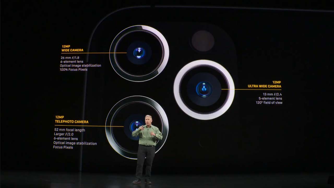 Apple las define así: “La nueva cámara con ultra gran angular es capaz de capturar cuatro veces más imagen, toda una ventaja en la fotografía de paisajes o arquitectura, primeros planos y muchas otras situaciones. El nuevo sensor gran angular, íntegramente con Focus Pixels, permite utilizar el modo Noche y multiplica la calidad de las fotografías realizadas en entornos interiores y exteriores con poca luz, lo que se traduce en unas imágenes más brillantes, con menos ruido y colores más naturales. El sistema de triple cámara lleva el modo Retrato hasta un nuevo nivel: permite elegir entre encuadre con gran angular o teleobjetivo, para poder utilizar un mayor campo de visión y fotografiar mejor a grupos de gente. La cámara con teleobjetivo incorpora una apertura más grande, de ƒ2.0, y captura un 40% más de luz en comparación con el iPhone XS para obtener fotos y vídeos de mayor calidad”.