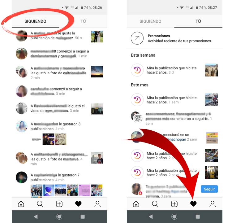 ¿Qué es la pestaña Siguiendo? Al tocar el ícono en forma de corazón se abre una pantalla que muestra la actividad del usuario y la de los que sigue, una manera entonces de espiar lo que ocurre en Instagram más allá del feed principal.